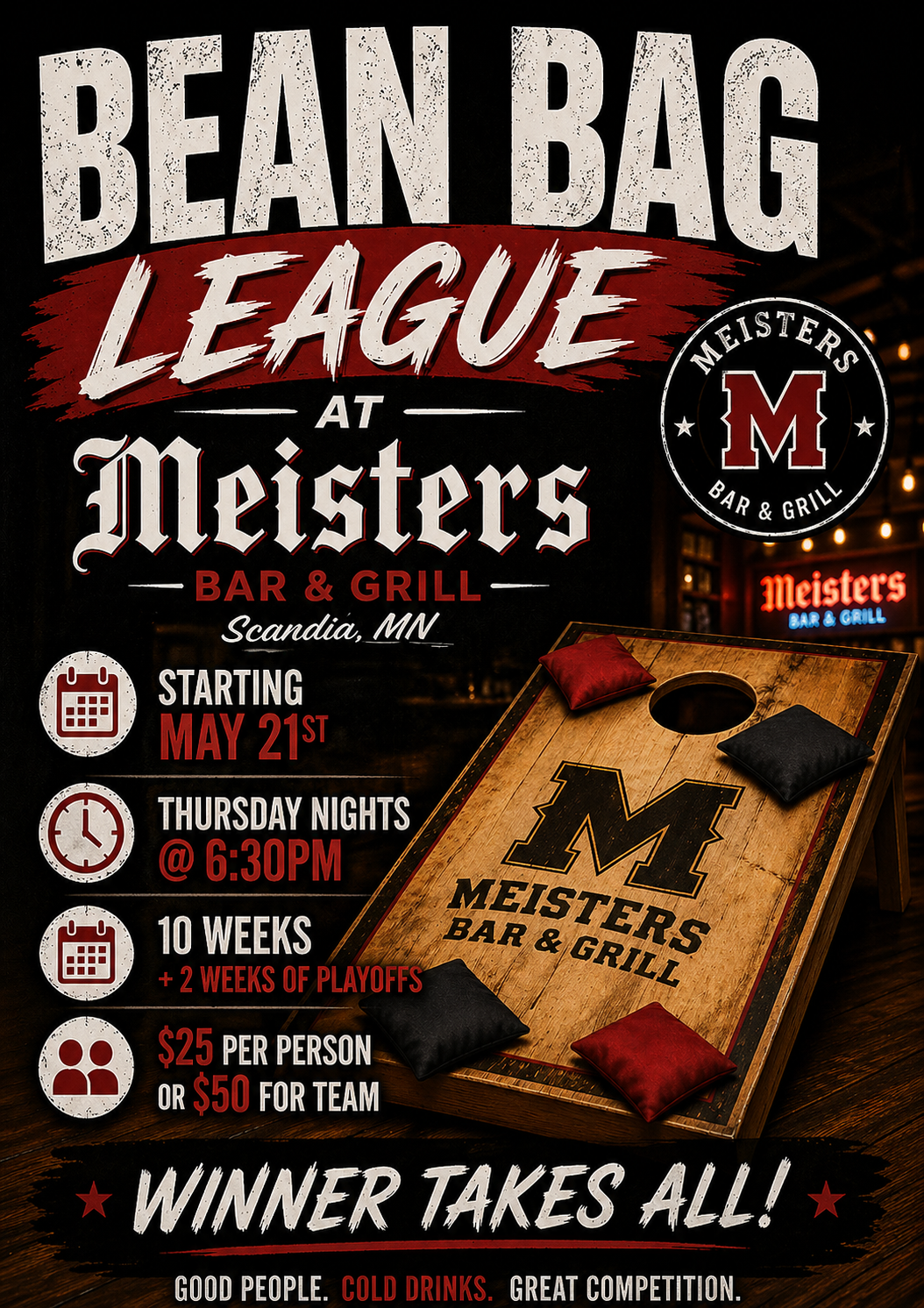 Get ready for a summer of competition, cold drinks, and good times at Meisters Bar & Grill!